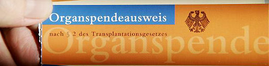 Frankfurt/Berlin - Der Anteil der Menschen in Deutschland, die ihre Entscheidung für oder gegen eine Organspende schriftlich hinterlegt haben, ist geringer als angenommen. Zwar gäben rund 20 Prozent der Befragten an, einen Organspendeausweis zu besitzen, in der Realität im Krankenhaus sehe dies jedoch anders aus, so die Deutsche Stiftung Organtransplantation (DSO) am Montag in Frankfurt unter Hinweis auf ihr vorliegende Zahlen aus dem vergangenen Jahr. Danach gab es nur in sieben Prozent der Fälle eine schriftlich hinterlegte Entscheidung zur Organspende.